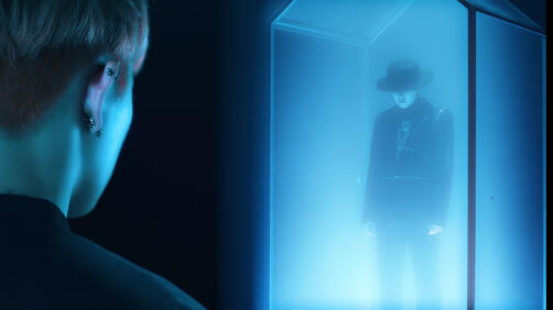Yeosang's action actually gets the the other 7 members back to their original dimension, but he stays behind and gets trapped inside one of the glass boxes just like HalaTeez.