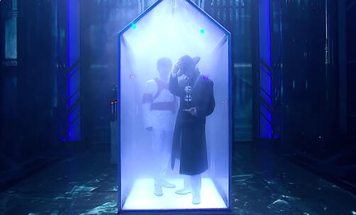The members manage to run away after Hongjoong throws a piece of broken glass at the Android Guardians instead of the Cromer.